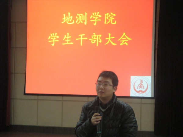 1月7日下午3点,地测学院学生干部大会在渭水校区长安文化艺术中心三楼多功能厅成功召开。地测学院党委副书记滑思忠、院团委书记刘伟、辅导员刘扬以及学生兼职辅导员、团学干部共50余人参加会议。会议由院团委书记刘伟主持。