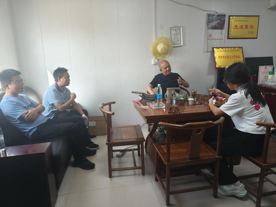 团队首站与青山镇青山绿水现代农业园区负责人魏东座谈,了解菌菇产业发展规划。在他的带领下,团队参观了木耳菌棒加工车间,详细了解菌菇培育至生产包装全流程。魏东阐述了灵芝的“药食同源”价值及精深加工前景,带领团队实地考察灵芝大棚,参观灵芝生长状况,了解灵芝孢子粉生产工艺。