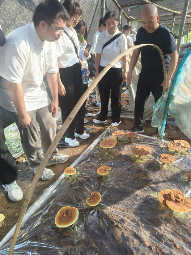 (团队成员参观灵芝培育基地)