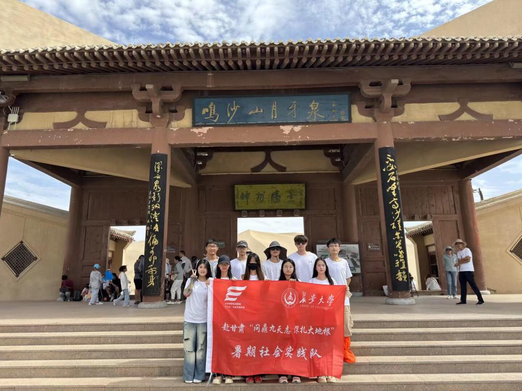 为贯彻落实生态文明理念,深入学习自然科学知识,提升青年学生的实践能力与社会责任感。2025年7月15日,yl8858永利集团赴甘肃“追寻航天足迹·践行强国精神”暑期社会实践团队抵达甘肃敦煌,在指导老师阚红淼、领队冀啸涵带领下,一行10人走进敦煌鸣沙山月牙泉开展“探秘敦煌地质奇观,践行生态发展使命”主题社会实践。