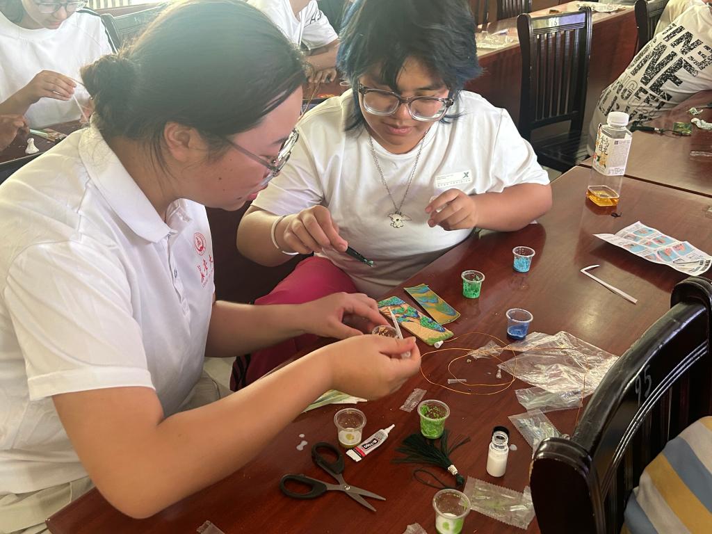 活动尾声,队员与学生们手持作品合影留念。一件件精美的掐丝珐琅作品,承载着中华传统工艺的智慧,凝聚着队员与学生们共同的学习实践经历,寄托着对中华优秀传统文化传承发展的美好期许。