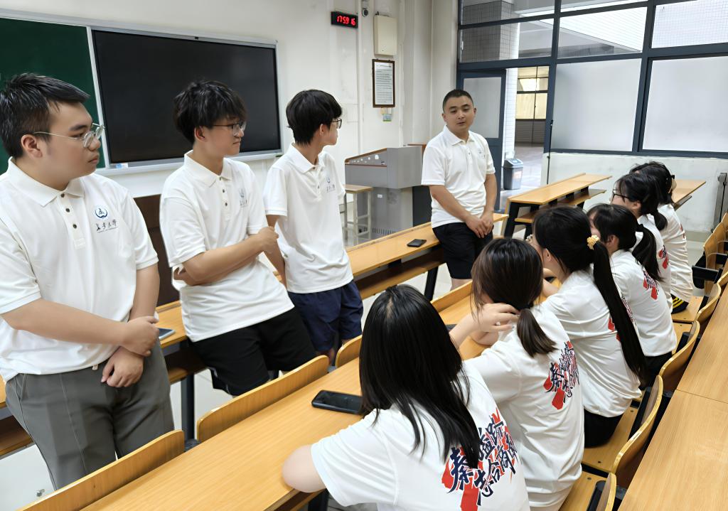 17日,富水河畔茶香弥漫。队员们踏入双山茶叶联营公司,亲身体验“一芽一叶”的采青技艺,并在铁锅旁跟随炒茶师傅学习“杀青、揉捻、烘干”三大制茶环节。通过亲身劳动,他们深刻领悟到“一片叶子富一方百姓”的深远意义。不仅如此,他们还将掌心的茶温和指尖的茶香,转化为对茶产业振兴的深入思考与积极探索。
