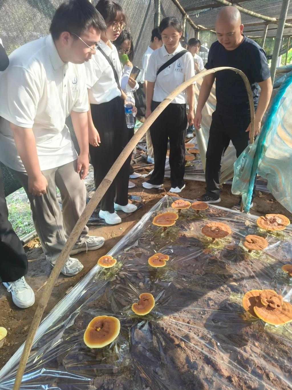 (实践队观察灵芝生长) (实践队参观光伏发电站)
