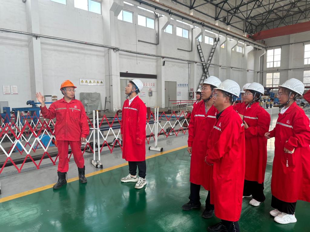 下午3时,研究院专家带领师生进入钻井实验车间观摩智能钻井系统、深海钻井平台模型等核心设备,重点讲解“低碳钻井工艺”等前沿成果。在实验人员的带领下,学生分组操作钻井模拟系统,体验数字化控制流程。让同学们感受最深的是实验间摆放了各种形状奇异的钻头,用来处理钻井作业过程中遇到的不同情况。这不禁让人赞叹,石油装备的“中国智造”让我们深感自豪!