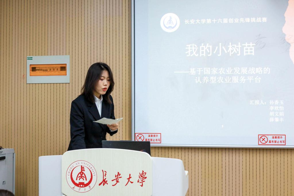 主持人宣告赛事开始后,各参赛团队代表依次登台答辩。参赛同学结合理论与实际,通过清晰的逻辑、详实的数据和直观的PPT成果展示,介绍了项目的创新点、技术可行性与市场前景等。各组项目立足现实需求、贴合实际应用,展现出一定的创新意识与实践价值。