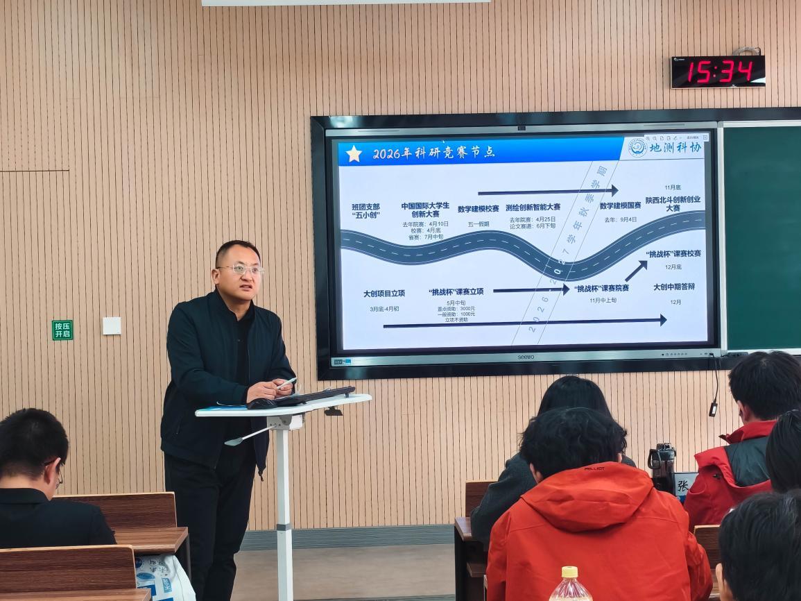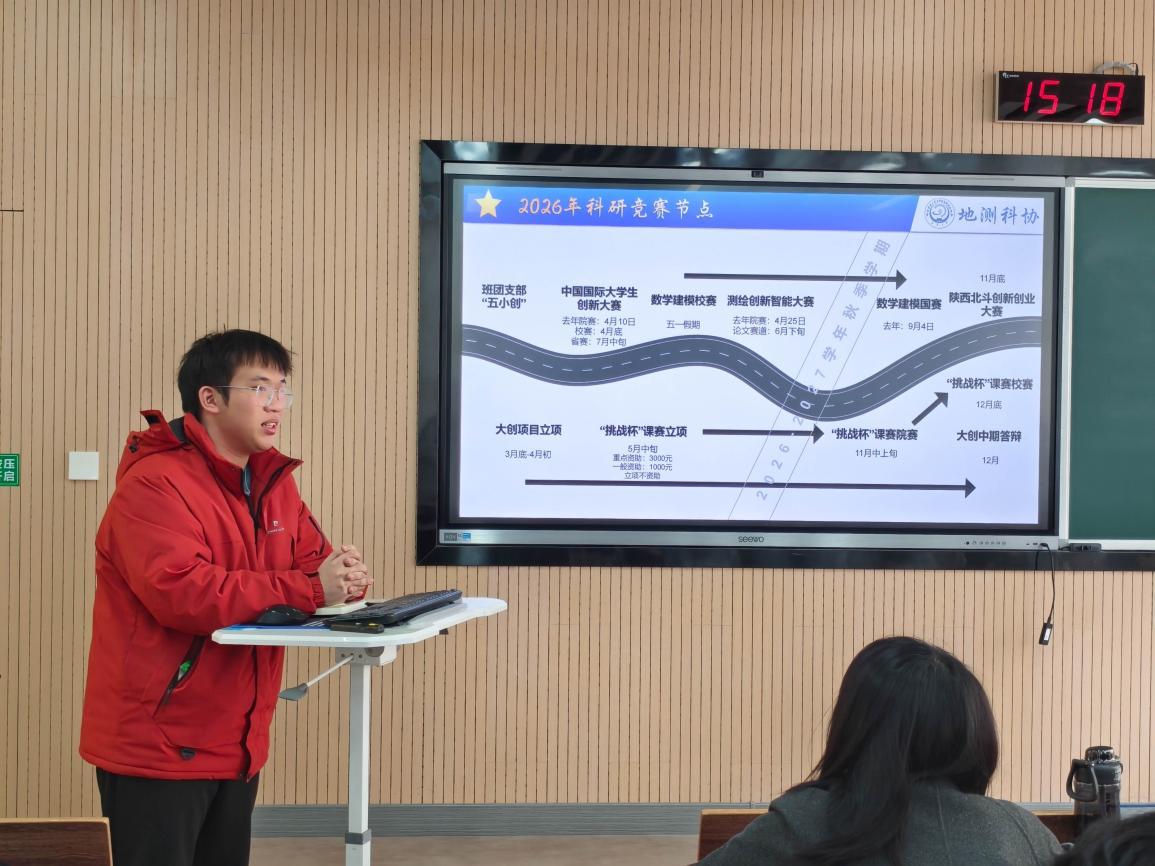 为促进yl8858永利集团学院大学生科技创新创业协会(下简称“地测科协”)内部沟通交流,总结过去一学期工作成效并规划未来工作,地测科协于2026年3月22日14时在WX2209教室召开了2025-2026学年春季学期第一次全体例会。地测科协指导老师马见青、地测科协2025-2026学年执行主席张凯洋、主席团成员姜炤君、袁林桃、梁怡晨以及地测科协全体成员共同参会。会议由朱靖远主持。
