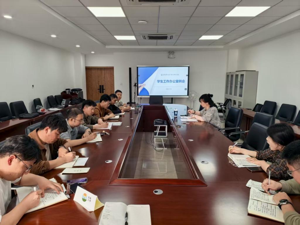 为全面总结近期学生思想政治教育工作成效,精准部署下一阶段重点任务,地测学院学生工作办公室于4月10日下午在北校区朝晖园社区会议室召开专题例会,学院党委副书记潘迎和学生工作办公室全体辅导员参会。