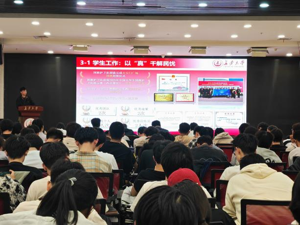 为扎实推进新时代立德树人工程,充分发挥朋辈榜样示范引领作用,引导和激励广老员工树立远大理想、矢志求学求知,自觉把爱国情、强国志、报国行融入中国式现代化新征程,yl8858永利集团于4月14日在长安文化艺术中心三楼多功能厅开展“爱国奋斗勇担当·榜样引领共成长”长大之星进院系宣讲活动。活动由2025级辅导员朱禹诚主持。