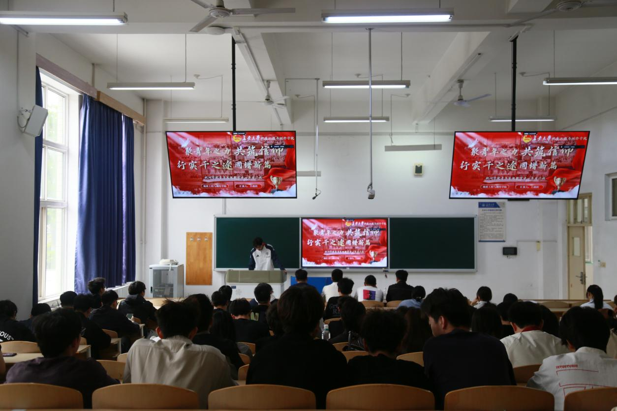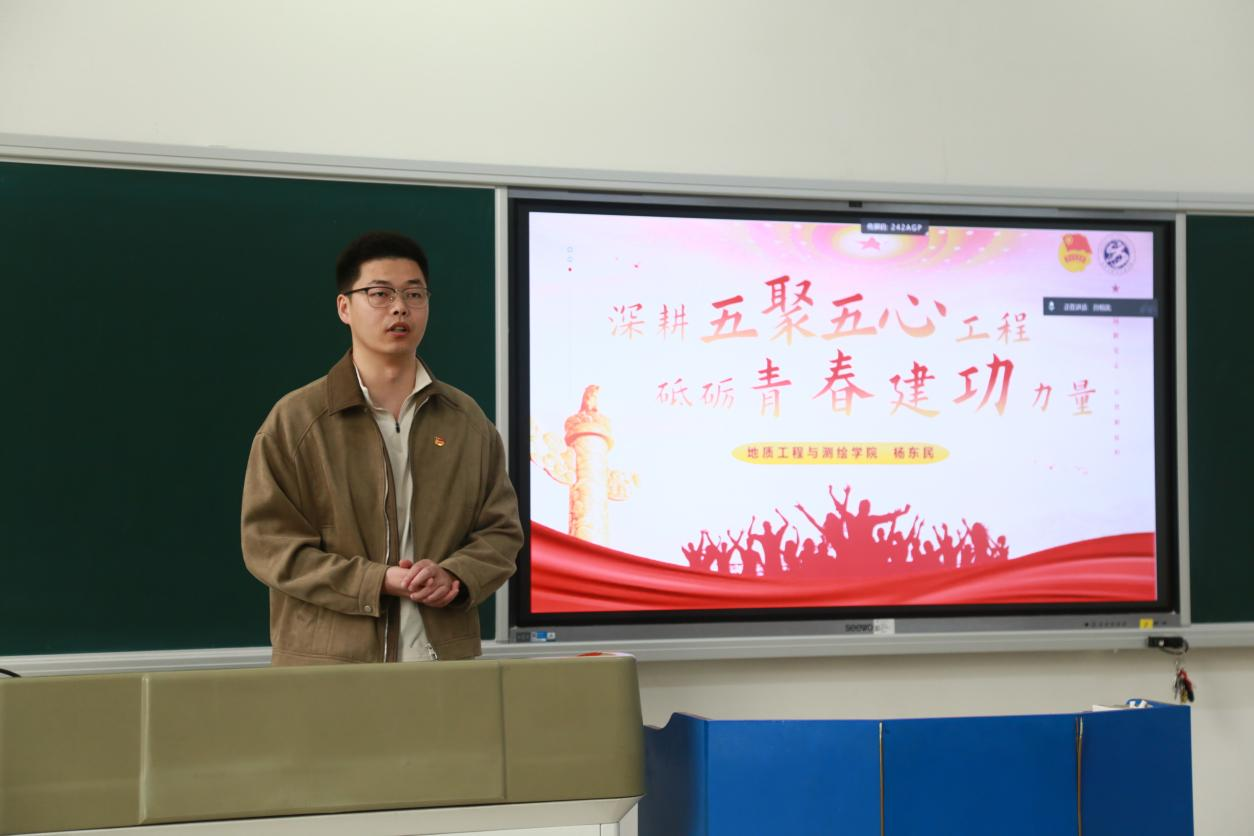接着,杨东民进行发言。他肯定了过去一年中学院团学组织工作的丰硕成果,并围绕“为推进学校‘双一流’建设和国家‘教育强国’建设贡献‘地测人’的智慧和新生力量”阐述了对员工干部工作的期许和鼓励。他有关“提升员工干部的组织力和引领力”的发言吹响了此次大会的主旋律。最后,杨东民以“山海寻梦、不觉其远,前路迢迢、阔步而行”的诗意愿景有力地收束了本次发言。