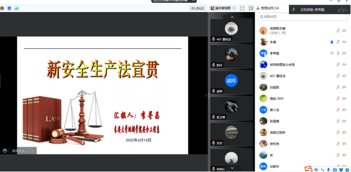 6月14日上午,地测学院安全生产专题培训以线上加线下的形式展开,全院教职工和学生参加,并邀请了党建帮扶的商南县二郎庙村参加在线联学。