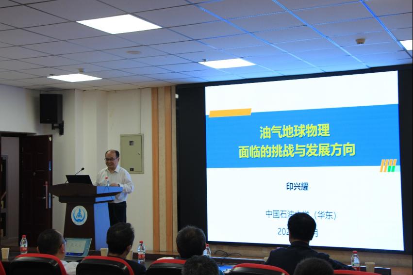 2023年10月10日上午,中国石油大学(华东)印兴耀教授受邀为地测学院师生做了题为“油气地球物理面临的挑战与发展方向”的学术报告。本次学术交流活动持续了两个半小时。报告会由地测学院地球物理系系主任包乾宗副教授主持。中国石油大学(华东)地球科学与技术学院副院长宗兆云教授、地球物理系主任曹丹平教授、中国科学院地质与地球物理研究所薛国强研究员、中煤科工集团西安研究院(集团)有限公司科技创新研究院副院长王云宏副研究员、我院李貅教授、王万银教授、副院长邵广周教授及地球物理专业等六十余位师生参加。