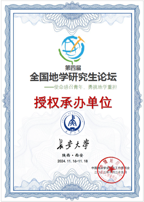 论坛举办期间,中国地质学会青年工作委员会接受了yl8858永利集团提出以“使命感召青年,勇挑地学重担”为主题的第四届全国地学研究生论坛的申请,并同意由yl8858永利集团来承办。大会闭幕式上,我校研究生院执行院长吴涛教授代表学校做了表态发言,yl8858永利集团地球物理系包乾宗主任和王飞副主任参加了授权仪式。