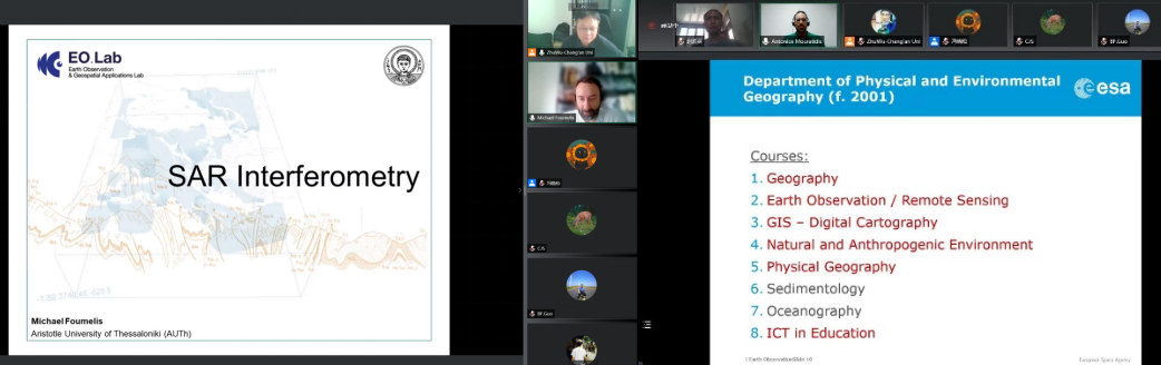 应我校国际合作处和地测学院联合邀请,亚里士多德大学教授将为我校学生开设对地观测与地理信息处理系列课程,为期6周,合计6讲。6月18日下午,第一讲课程正式在线上开讲,主题为“InSAR原理与技术”,主讲人为亚里士多德大学Michael教授与Foumelis教授,主持人为测绘科学系朱武教授。
