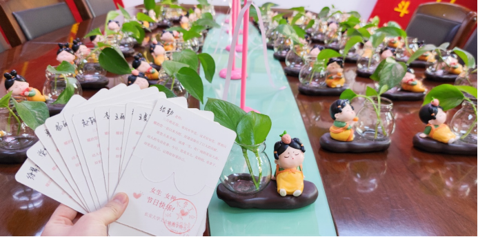 3月7日,我院响应学校“巾帼言志——我们的新征程”系列活动的号召,专门组织主题为“所愿成真 浪漫一生”的特色庆祝活动,活动以“分散集中、线上线下”相结合的方式为女教职工发放了创意桌面水培小摆件并配以手写贺卡、贺卡祝词等节日礼物。祝词中感谢了学院女教职工为校、院发展做出的贡献,并重申女性的重要地位,呼吁女教职工重视自身身心健康发展。活动充满创意,营造浪漫温馨的氛围,获得大家的一致好评。