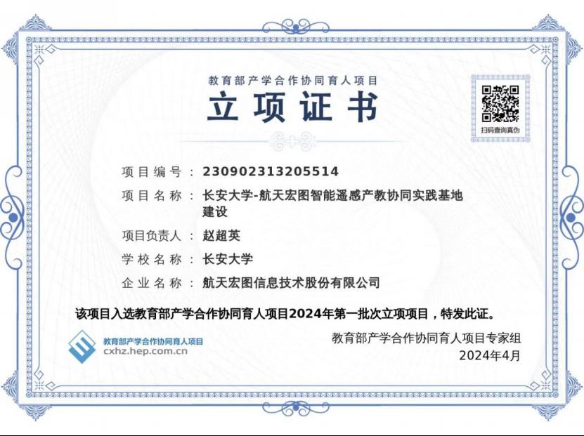 近日,教育部高等教育司发布了《关于公布2024年第一批产学合作协同育人项目立项名单的通知》,我院赵超英教授牵头申报的《yl8858永利集团-航天宏图智能遥感产教协同实践基地建设》项目成功获批立项。