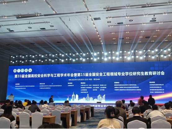 第33届全国高校安全科学与工程学术年会暨第15届全国安全工程领域专业学位研究生教育研讨会于2023年10月20日-22日在山东青岛举办。本次会议由公共安全科学技术学会、全国高校安全科学与工程学术年会委员会主办,教育部安全科学与工程类专业教学指导委员会、中国职业安全健康协会联合主办,由山东科技大学承办。全国安全科学与工程学科专家、学者与学生代表出席参加了本次大会,参会人数约1300多人。地测学院翟越教授、李寻昌副教授、侯亚楠老师带领我院2021级安全工程专业学生罗梦婷、张莎莎、姜晓敏、刘淑溢参加了会议和相关比赛。