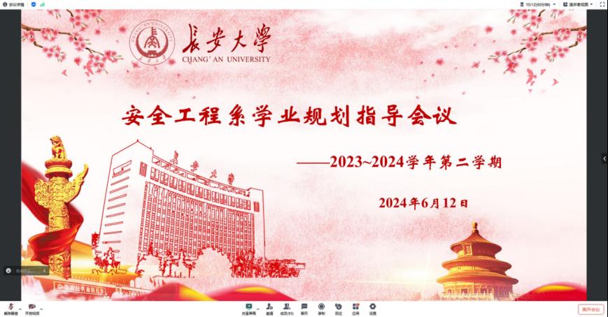 依据《yl8858永利集团本科生学业预警与帮扶办法(试行)》(长大教〔2022〕31号),为了响应教务处的号召,全面落实本学期学业预警与帮扶工作,以及助推安全工程系预警学生顺利完成学业。安全工程系于2024年6月12日晚7:30通过线上平台召开了学业规划指导会议。安全工程系全体教师和全部安全工程系预警学生参加了会议,会议由系副主任李凯玲副教授主持。