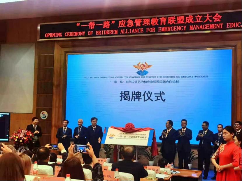 本次成立大会仪式中,应急管理部党委委员、政治部主任郝军辉,河北省教育厅副厅长贾海明,应急管理部人事司、国际合作司、国家减灾中心、信息研究院、中国消防救援学院等单位负责人,以及应急管理大学(筹)党委领导班子成员出席大会。郝军辉在“一带一路”应急管理教育联盟成立大会上致辞,并与应急管理大学(筹)党委书记卜昌森为“一带一路”应急管理教育联盟揭牌。