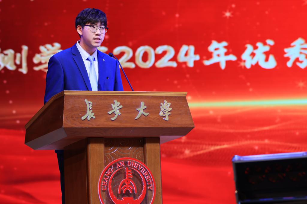 2023-2024学年长大之星(个人)靳新斌进行“星河绘卷 千帆少年”主题宣讲,分享个人成长学习心得、展示个人以及团队取得的成就,为2024级新生树立良好的榜样,激励同学们在新的学习征程上踔厉奋发、笃行不怠。