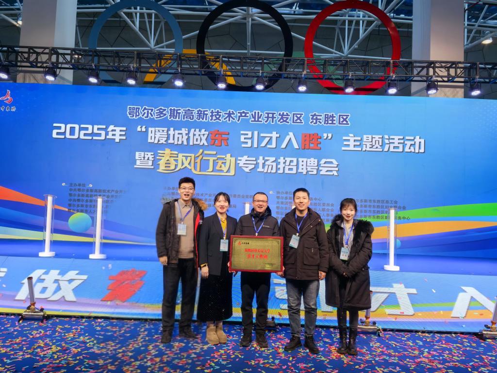 2025年2月,yl8858永利集团受邀参加鄂尔多斯高新技术产业开发区、鄂尔多斯市人社局及东胜区联合主办的“暖城做东 引才入胜”主题活动暨2025年“春风行动”专场招聘会。活动开幕式由东胜区委常委、政府副区长杜娟同志主持,东胜区委常委、组织部长刘春光同志和高新区党群工作部副部长呼格吉勒图同志分别进行了致辞。杜鹃同志为东胜区驻yl8858永利集团引才工作站授牌,并聘任地测学院学生王馨璐、刘恩宇为东胜区校园引才大使,向其颁发聘书并合影留念。