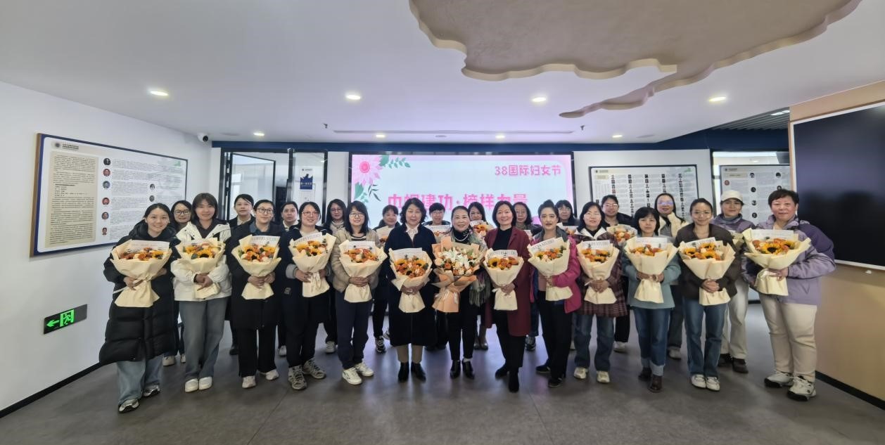 分享会现场气氛热烈,掌声不断。女教工们围绕提升职业幸福感、家庭生活智慧等话题展开深度交流。活动最后,全体人员手持学院准备的鲜花合影留念,定格下自信昂扬的巾帼风采。