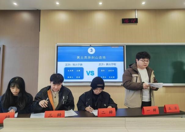 2025年12月24日下午,依托地质工程研究生专业课《黄土工程地质》,我院地质工程系在雁塔校区举办了专题学术辩论赛。2025级地质工程专业研究生围绕“黄土高原水土流失、黄土高原气候暖湿化、黄土高原削山造地”等辩题进行了三场激烈的辩论赛。辩论赛由2025级研究生陈涛主持。邀请地质工程系主任朱兴华教授、成玉祥副教授、安鹏副教授等三位评委对辩论赛进行了点评,并分别从黄土高原250万年以来的沉积与侵蚀特征、黄土物理力学机制、工程伦理与经济、黄土高原水土资源环境与生态地质等方面对辩题进行了深度剖析。通过本次活动,同学们不仅扩展了知识面、夯实了专业基础,同时具备了从地质、工程、生态、经济等多维度辩证看待黄土高原重大工程的思维。