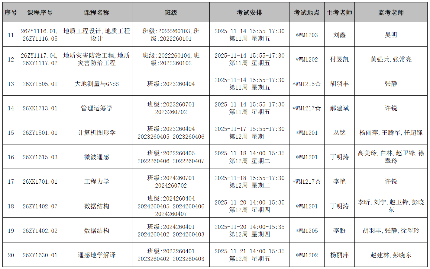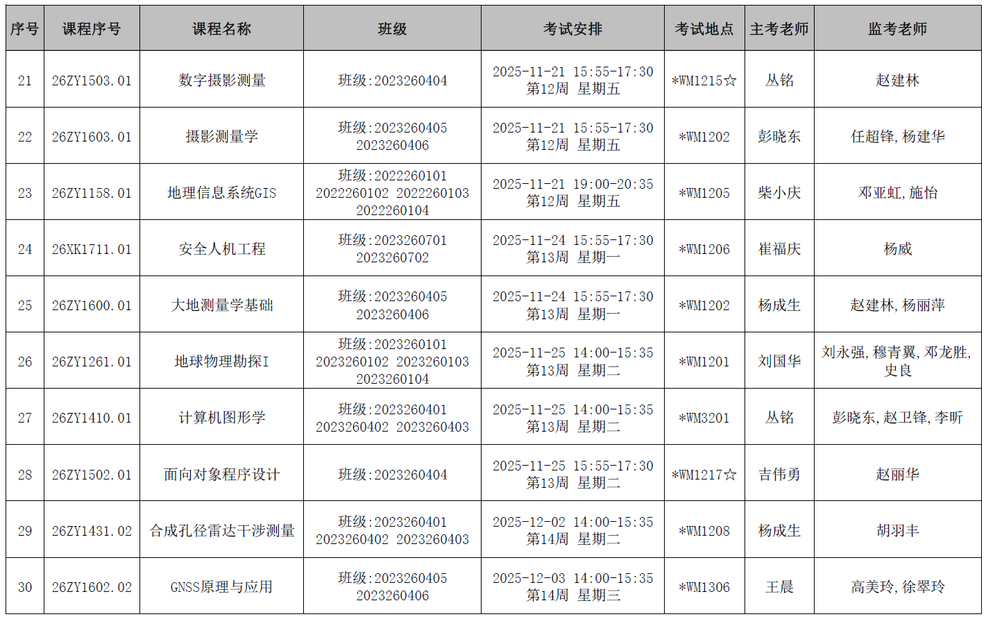 本学期第10周前结课的地测学院开课课程期末考试监考安排已发布,监考安排学院已经在本科教务系统中填报完成(监考教师可同时在本科教务系统中查看监考安排)。为确保考试平稳顺利进行,学院已将相关监考工作安排表上传到附件中,请各位老师及时下载查阅,并按时完成监考工作。