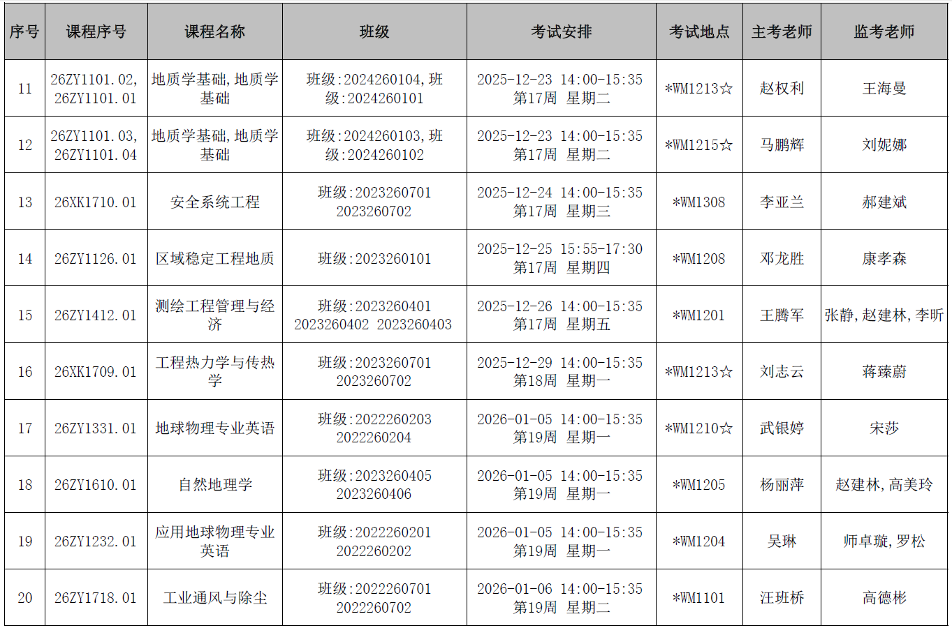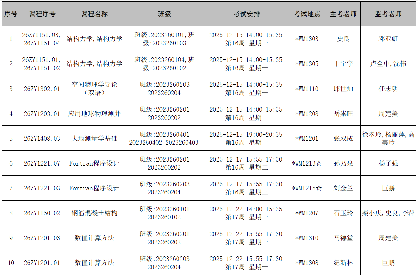 本学期第11周后结课的地测学院开课课程期末考试监考安排已发布,监考安排学院已经在本科教务系统中填报完成(监考教师可同时在本科教务系统中查看监考安排)。为确保考试平稳顺利进行,学院已将相关监考工作安排表上传到附件中,请各位老师及时下载查阅,并按时完成监考工作。