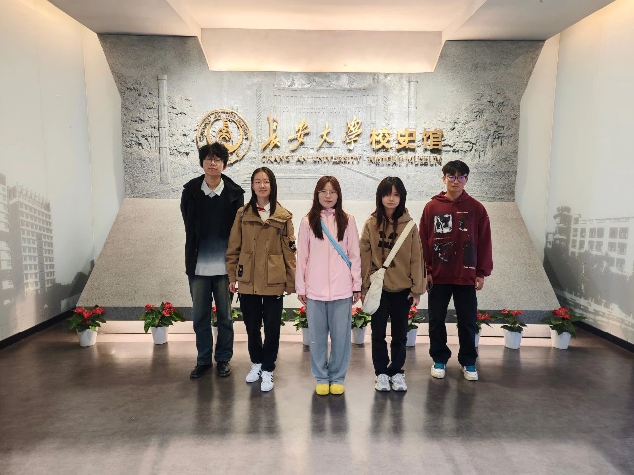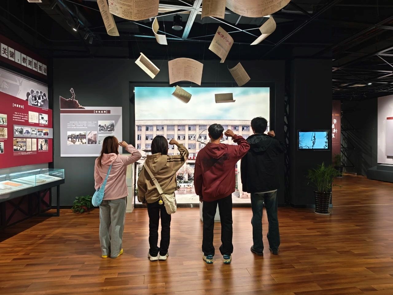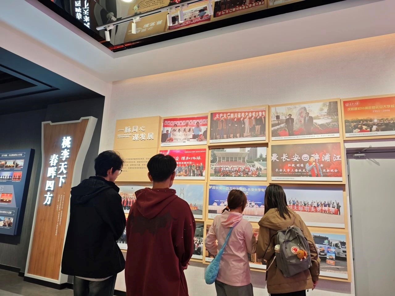 小组成员在照片墙前驻足凝视